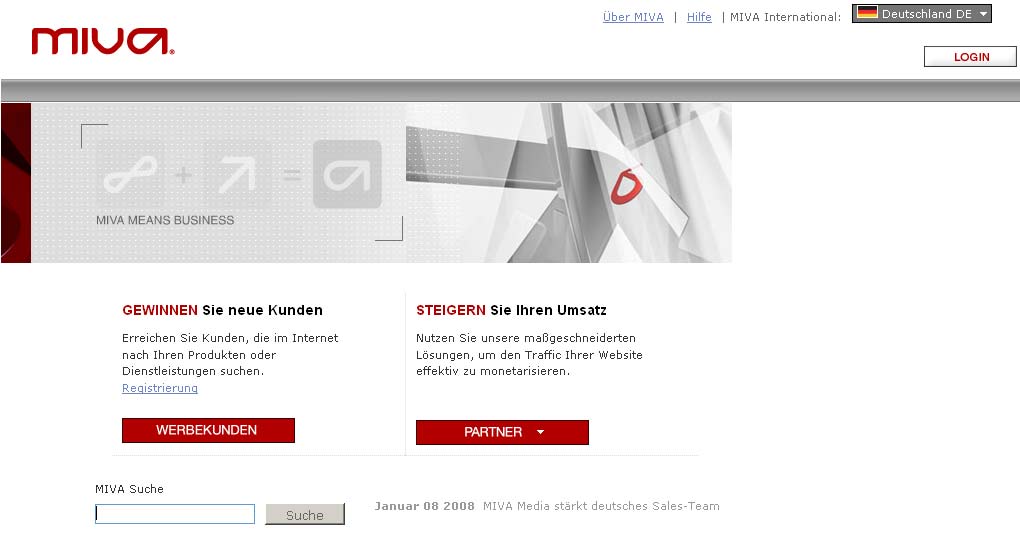 MIVA vermarktet Pay-Per-Klick-Anzeigen auf Portalen und Suchmaschinen, betreibt aber selbst kein eigenes Portal oder eine Suchmaschine. Zu denSeiten auf denen manüber MIVA Anzeigen schalten kann gehören unter anderem Metaspinner, Linkarena, Falk oder Markt.de